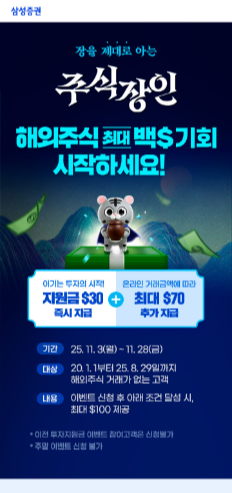• 해외주식 투자지원금 이벤트 (2025-11-03 ~ 2025-11-28)