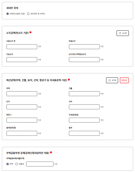 · 계산은 개인이 아니라 세대 기준입니다. 세대주 + 세대원의 내역을 모두 포함해야 해요.