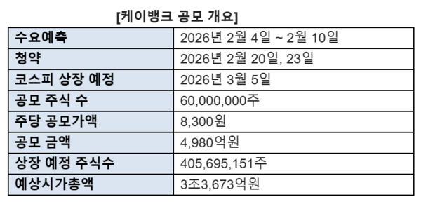 - 결론: 케이뱅크 공모주 청약은 2월 20일(금)~23일(월), 공모가 8,300원 확정