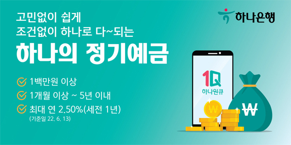 | 하나의 정기예금 | 하나원큐 앱 | 1개월~5년 | 연 2.0~2.8% (적용금리 최대 3.60%) |
